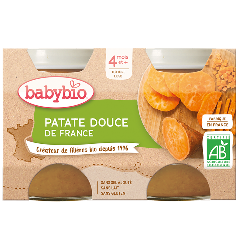 Babybio a choisi la patate douce française pour jouer le premier rôle. Avec sa texture douce et son goût légèrement sucré, elle a été finement moulinée en purée pour exprimer tout son talent.