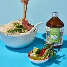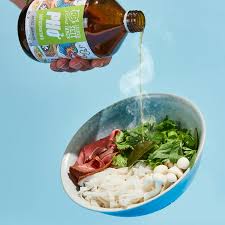 Ingrédients : Eau, 28% viande et os de poule*, 14% os de cou et 3% tendons de Boeuf* de Hohenlohe, gingembre*, oignon*, ail*, sauce poisson (anchois, sel marin, sucre), jus de citron vert*, sel gemme, sucre de betterave*, badiane*, cannelle*, cardamome*, piment oeil d’oiseau*.