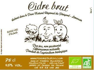 CIDRE ELABORE DANS LE PARC NATUREL REGIONAL DU PERIGORD LIMOUSIN PAR ANNE & FREDERIC BOURDEIX A SAINT PIERRE-DE-FRUGIE