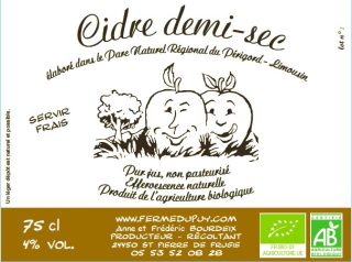 CIDRE ELABORE DANS LE PARC NATUREL REGIONAL DU PERIGORD LIMOUSIN PAR ANNE & FREDERIC BOURDEIX A SAINT PIERRE-DE-FRUGIE