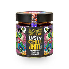 Huile d’épices* (huile de tournesol*, oignon nouveau*, anis étoilé*, fenouil*, poivre de Sichuan*, cannelle*), sauce Shoyu SOJA* (fèves de SOJA*, eau de BLÉ*, sel), sucre de canne*, 6% piment *, ail*, shiitake*, gingembre*