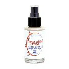 La crème solaire FPS20 verre est conçue à base d’ingrédients naturels et bio et de filtres UV sans nanoparticules. C’est un soin qui protège efficacement le visage et le corps contre les rayons UV. En effet, elle crée une barrière physique qui réfléchit les rayons du soleil et favorise un bronzage doré. Elle est préconisée pour toutes les peaux, même sensibles et pour les enfants à partir de 5 ans. Notre formule est légèrement teintée avec des tanins naturels pour éviter l’effet “blanc”, vous pouvez de ce fait, la porter dans vos déplacements quotidiens. N’oubliez pas d’en appliquer régulièrement pendant votre exposition.