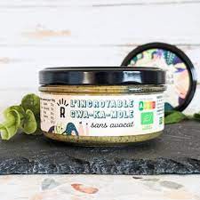 pois cassés, huile de tournesol première pression à froid, jus de citron, okara de soja (10.6%), courgettes, oignons, épinards, poivrons verts, sel marin, épices, piment d’Espelette AOP, poivre noir.