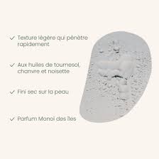 Agent émollient issu de la coco, huile de tournesol*, huile de chanvre*, huile de noisette*, parfum Monoï des îles, tocophérol (anti-oxydant).