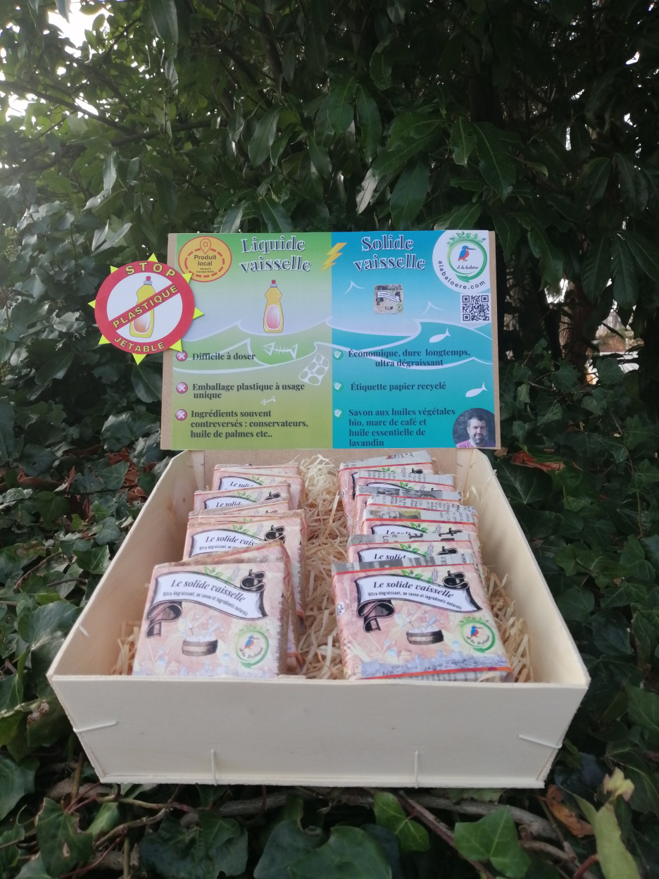Utilisation : Frotter régulièrement le savon sur votre éponge pendant plusieurs secondes, jusqu’à obtenir une mousse abondante. Après c’est comme d’habitude. Peut aussi servir de savon ménager, pour nettoyer plaques, éviers, tables…