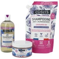 Sur cheveux lavés avec le shampooing Anti jaunissement Coslys et essorés, appliquer une noisette du masque sur la longueur, en évitant les racines.