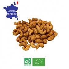 Noix de cajou* (96%), sel, mélange chili* (Paprika doux* fruit poudre, Cumin* graine poudre, Coriandre* graine poudre, Ail* gousse poudre, Piment de Cayenne* fruit poudre, Sel fin cristaux poudre, Betterave rouge* racine poudre, Origan vert* poudre)(1,6%), agent d’enrobage* : fibre d’acacia* et piment de cayenne*.