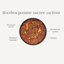 Du rooibos rouge, des morceaux de pomme et un goût inimitable de pomme cuite au four. Une délicieuse boisson pour l’hiver, sans théine. boisson idéale au moment de noël.