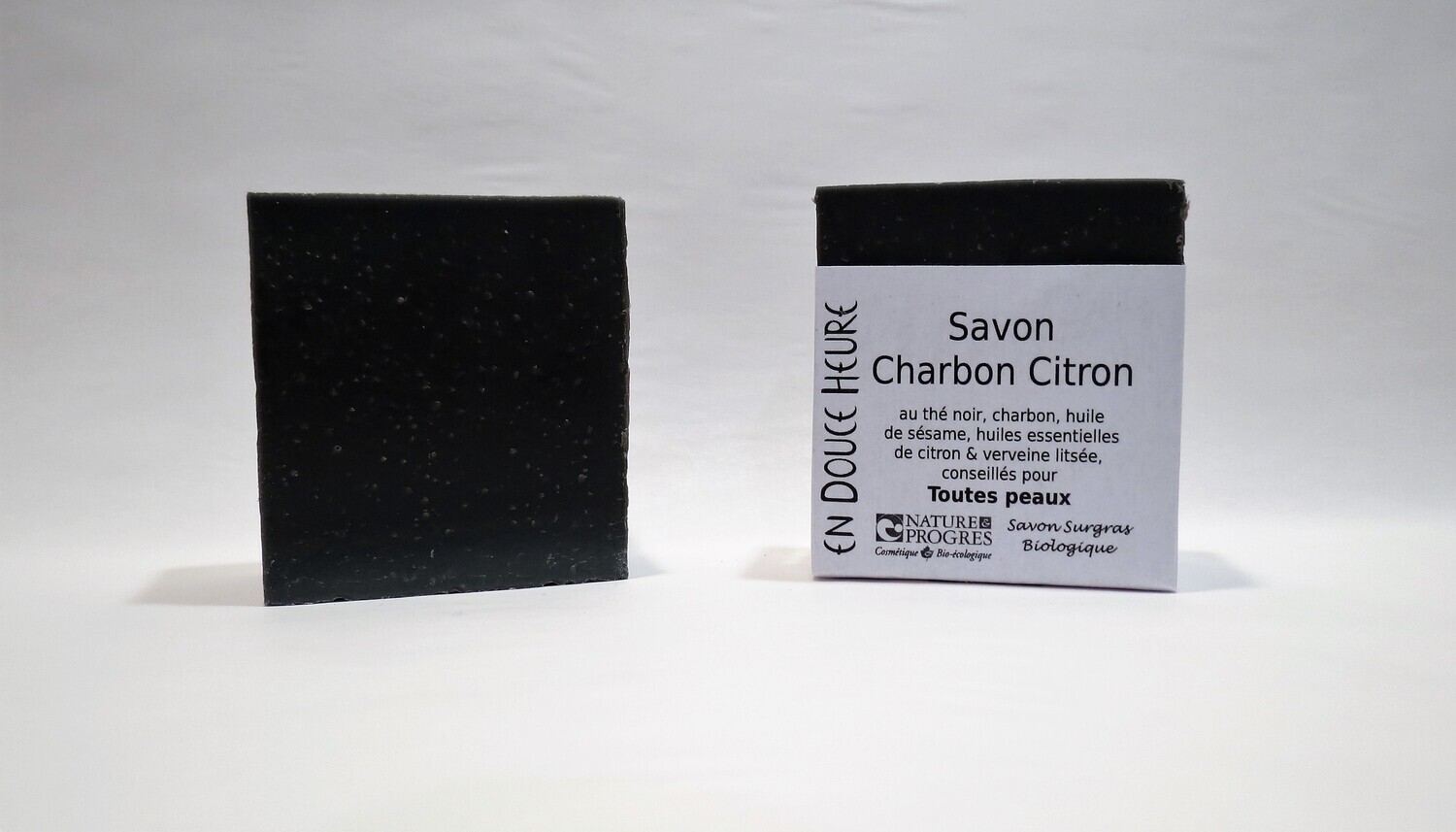 Savon fabriqué par En Douce Heure, titulaire de la mention Nature & Progrès, Cosmétique Bio-écologique.