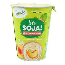 Jus de soja* 78%, pêche* 10%, sucre de canne non raffiné*, amidon de tapioca*, arôme naturel de pêche*, arôme naturel de fleur de sureau* 0,3%, jus concentré de citron*, épaississants : farine de graines de caroube*, ferments sélectionnés dont Bifidus et Lactobacillus acidophilus.
