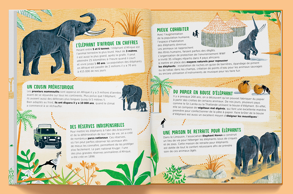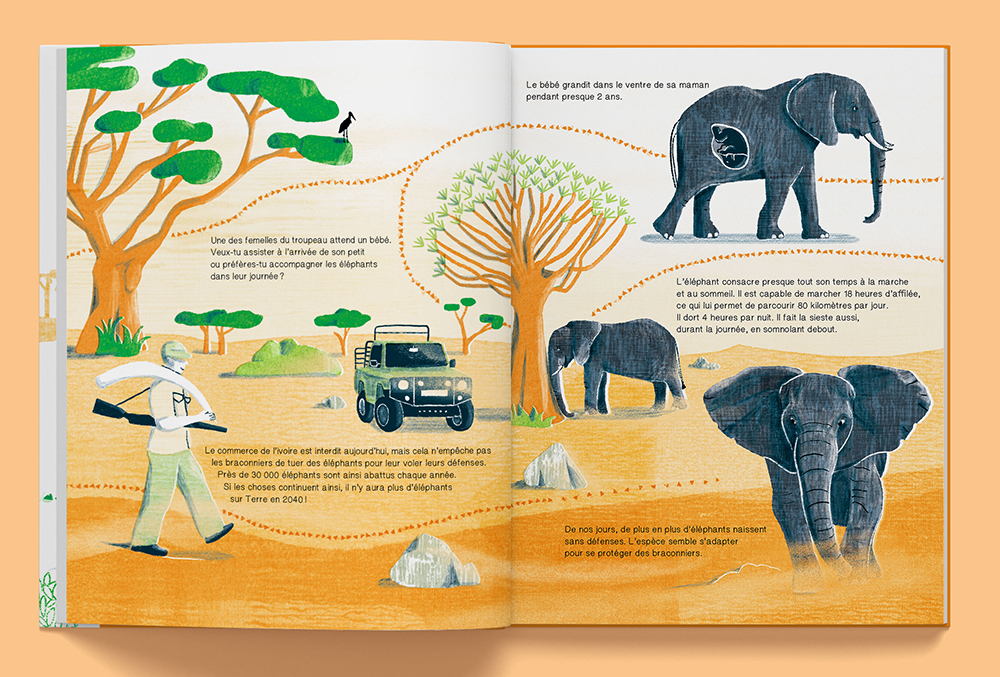 Sur le chemin qui serpente de page en page, à toi de choisir quel éléphant tu vas suivre !