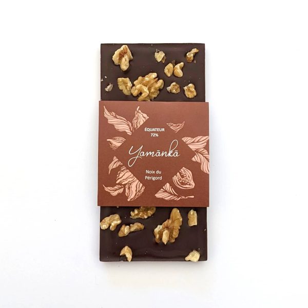 INGREDIENTS : chocolat noir* (pâte de cacao Equateur*, sucre*, beurre de cacao*), Noix*